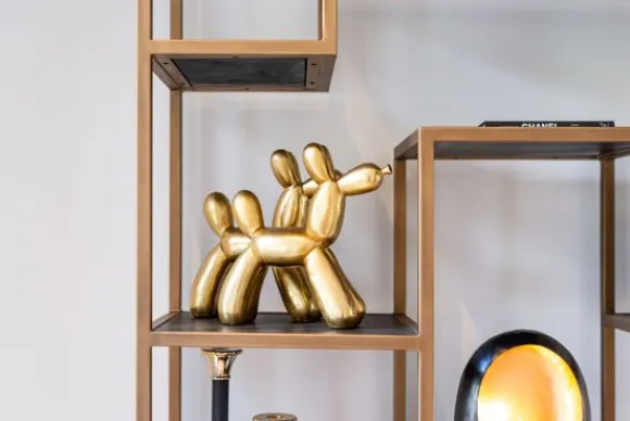 Beeld Dog 210360 van het merk Richmond Interiors is een gouden beeldje van een ballonhondje. Het beeld is gemaakt van polyresin, dit is een materiaalsoort dat bestaat uit gemalen steen wat wordt vermengd met vloeibaar kunsthars. Dit zorgt voor een sterk materiaal waar geen vocht in kan dringen, een eindeloze levensduur heeft en makkelijk schoon te maken is met een vochtige doek zonder schoonmaakmiddelen.
