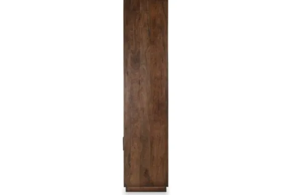 Bergkast Jaxx is uitgevoerd in mangohout in de kleur bruin. Dit is een duurzame houtsoort met een fijne nerfstructuur, waarbij elk meubel een eigen uitstraling heeft. Het materiaal is geschikt voor dagelijks gebruik en biedt een stevige basis.