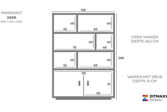 Bergkast Jaxx van het merk Livingfurn is een opvallende opbergkast met een stoere uitstraling. De rechte vorm en open indeling geven de kast een speels karakter en maken hem geschikt voor de woonkamer of eetkamer binnen een modern of industrieel interieur.