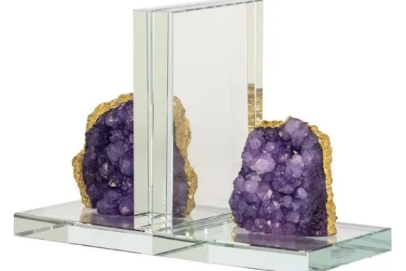 Boekenstandaard Agate 212034 van het merk Richmond Interiors is gemaakt van kristal en lijkt op amethist. De zijkanten van het kristal zijn goudgekleurd, het midden is net zoals de amethist paars. Deze boekenstandaard maakt van elk hoekje een elegant geheel.