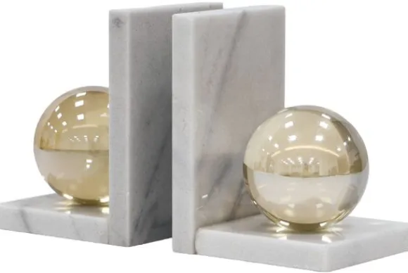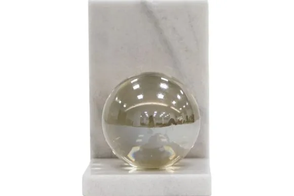 De boekenstandaard is gemaakt van marmer en kristal. De stevige marmeren basis geeft stabiliteit terwijl de kristallen bollen een decoratief accent toevoegen.