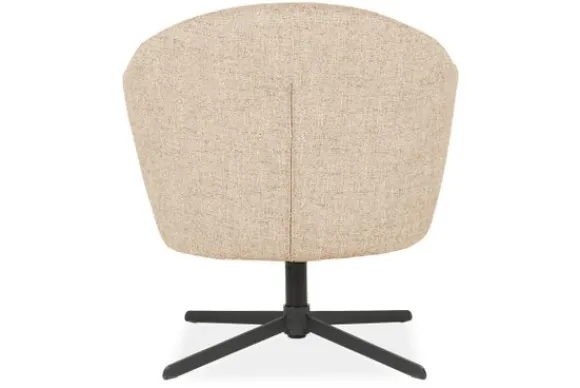 De stevige, zwarte metalen kruisvoet contrasteert subtiel met de lichte bekleding en zorgt voor een modern, industrieel accent. Dankzij de 360 graden draaifunctie biedt deze fauteuil maximale bewegingsvrijheid en flexibiliteit – ideaal in een leeshoek, naast de bank of in een stijlvol kantoor.