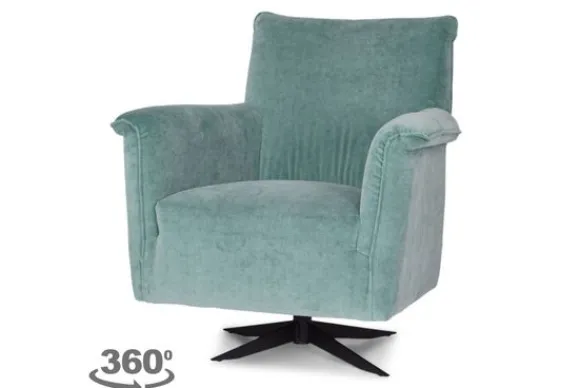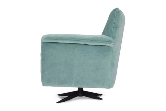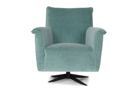 Deze fauteuil wordt standaard uitgevoerd met een zwarte draaipoot en een lage rug.