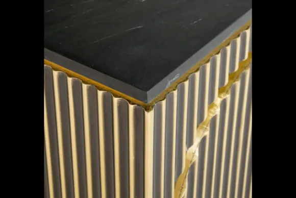 Dressoir Les Arcs 212710 van het merk Richmond Interiors is gemaakt van hout afgewerkt met een brass finish en een marmeren blad. Marmer is een duurzame steensoort en heeft een luxe en stijlvolle uitstraling. De steensoort is een natuurproduct en kenmerkt zich door de unieke afwerkingen en kan zowel grove als gladde delen bevatten. Door de kenmerkende kleurschakeringen en aders is geen product hetzelfde. Zo haal je met een marmer product dus echt iets unieks in huis. Het dressoir is voorzien van drie deurtjes met ieder een getoogde deur. Achter de deurtjes is één plank bevestigd, waardoor de ruimte in tweeën wordt gesplitst en je zo voldoende ruimte hebt om al je spullen op te bergen.