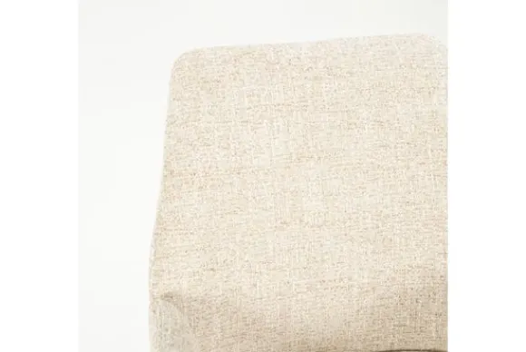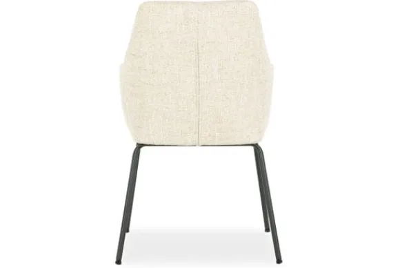 De licht hellende rugleuning en de volledig gestoffeerde armleuningen bieden een zintuiglijk zitcomfort, perfect voor lange diners of ontspannen gesprekken aan tafel. De fijne structuur van de stof voegt een tactiele gelaagdheid toe die zowel luxe als huiselijkheid oproept.