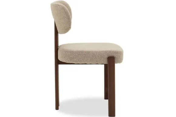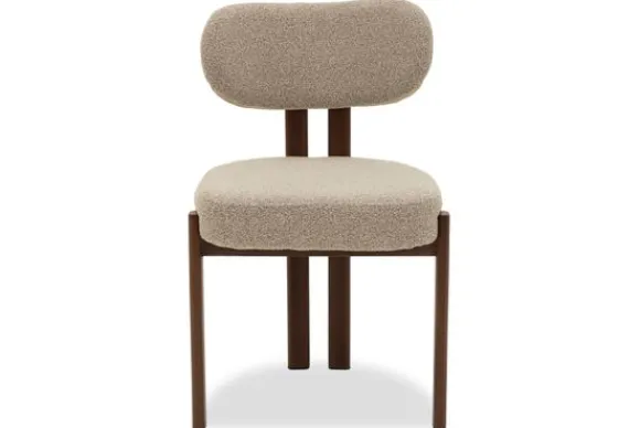 Eetkamerstoel Riku van het merk Plix is een moderne stoel met een warme uitstraling. De zachte bekleding in een natuurlijke beige tint zorgt voor een comfortabele zit, terwijl de afgeronde vormen een speelse touch geven aan het design.