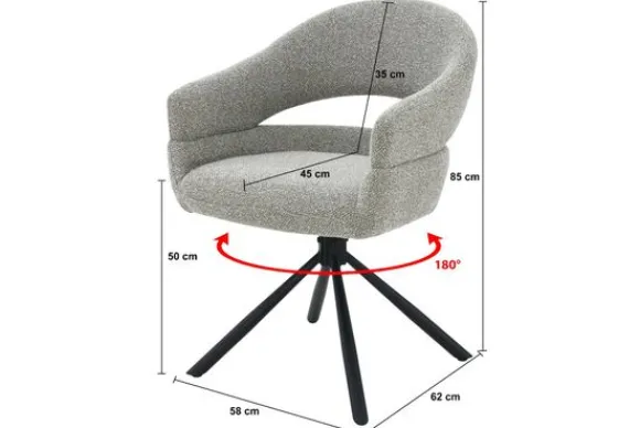 Het zwarte onderstel met slanke metalen poten voegt een stoer contrast toe en past perfect binnen een designgerichte eetkamer. Dankzij het 180 graden draaimechanisme combineert Linn moeiteloos functionaliteit met esthetiek.