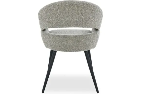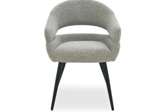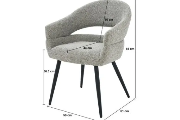 Eetkamerstoel Megan van het merk Livingfurn is een subtiele blikvanger met een tijdloos karakter. De grijze bekleding voelt zacht aan en heeft een verfijnde structuur die perfect past in interieurs waar rust en eenvoud centraal staan. De afgeronde rugleuning vloeit elegant over in de armleuningen en zorgt voor een omhullend zitcomfort.