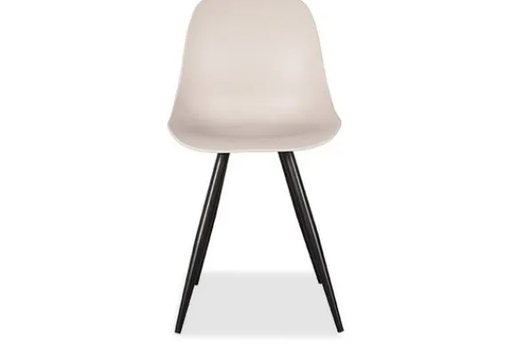 Eetkamerstoel Monza, uitgevoerd in polypropyleen in de kleur Zand, heeft een zeer luxe en comfortabele kuip voorzien van elegante rondingen. Het materiaal is duurzaam en zeer gebruiksvriendelijk. Tevens is Monza in het bezit van licht uitlopende poten, uitgevoerd in zwart metaal, waardoor de stoel stevig op de grond staat en ook nog eens een speelse touch krijgt.
