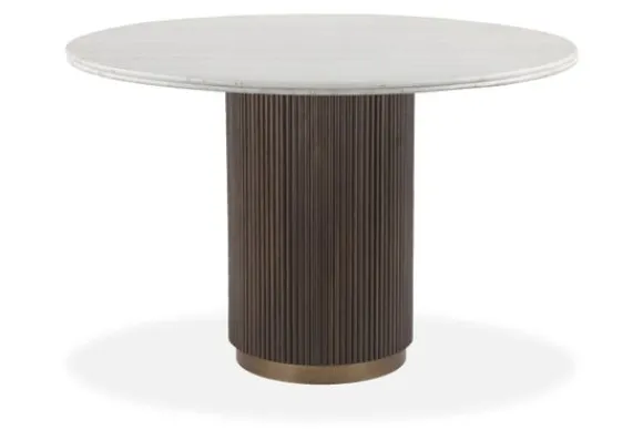 Eetkamertafel Mayfield van het merk Richmond Interiors is gemaakt van marmer in combinatie met mangohout. Mangohout kun je herkennen aan de vele kleurschakeringen en ongelijkheden in het oppervlakte van het hout, waardoor geen enkel meubelstuk hetzelfde is. De kleuren in mangohout kunnen variëren van licht- tot donkerbruine tonen, met soms een rode gloed of juist een gelige ondertoon. Mangohout is een duurzame houtsoort. Marmer is een duurzame steensoort en heeft een luxe en stijlvolle uitstraling. De steensoort is een natuurproduct en kenmerkt zich door de unieke afwerkingen en kan zowel grove als gladde delen bevatten. Door de kenmerkende kleurschakeringen en aders is geen product hetzelfde. Zo haal je met een marmer product dus echt iets unieks in huis.