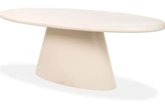 Eettafel Urban Bloom 213772 van het merk Richmond Interiors is een moderne eyecatcher met een ovaal blad en een elegant uitlopende voet. De zachte ivoortint en de afgeronde vormen zorgen voor een tijdloos en verfijnd geheel.