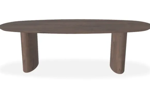 Eettafel Giro van het merk De Houtmaatschappij is een blikvanger met karakter. De elegante stomp ovale vorm van het blad zorgt voor een harmonieuze uitstraling, terwijl het massieve houten design warmte toevoegt aan elke eetruimte.