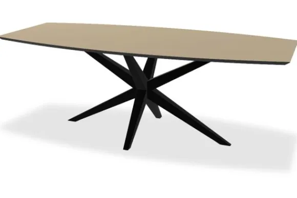 Deze eettafel wordt geleverd met een metalen poot in een zwarte kleur. Onder de opties in de configurator is het mogelijk om te kiezen voor een andere kleur of een geheel andere tafelpoot.