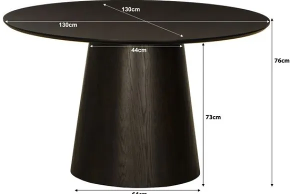 De tafel is gemaakt van samengesteld hout met een toplaag van donker eikenfineer. Dit zorgt voor een stevige en duurzame constructie met een natuurlijke uitstraling. Het ronde blad is makkelijk te onderhouden en zorgt voor een betrokken en praktische eethoek.