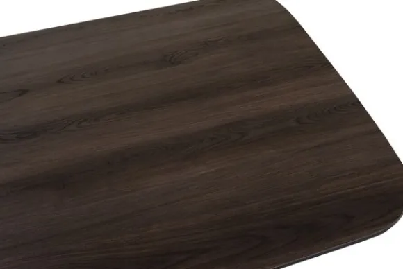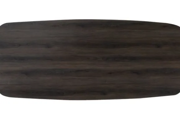 Eettafel Sevron van het merk Ideco is uitgevoerd met een Deens ovaal tafeblad van HPL. Het blad in de kleur Black Wood heeft een fijne houtstructuur en afgeronde hoeken. HPL is een sterke en onderhoudsvriendelijke kunststof toplaag die bestaat uit samengeperste lagen, waardoor het blad krasvast, kleurvast en slijtvast is.