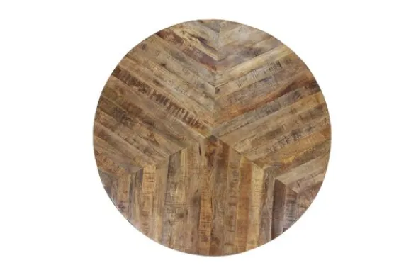 Het tafelblad is gemaakt van mangohout dat in een verfijnd 3 punt patroon ligt. De houtsoort heeft vele kleurschakeringen en ongelijkheden in het oppervlak, wat een natuurlijke en unieke look geeft.