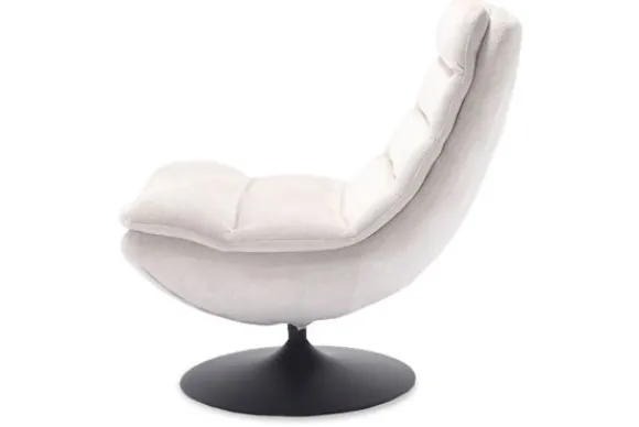 De zwarte, ronde voet zorgt voor een stoer contrast en maakt 360 graden draaien mogelijk. Dit maakt de fauteuil niet alleen praktisch, maar ook speels in gebruik.