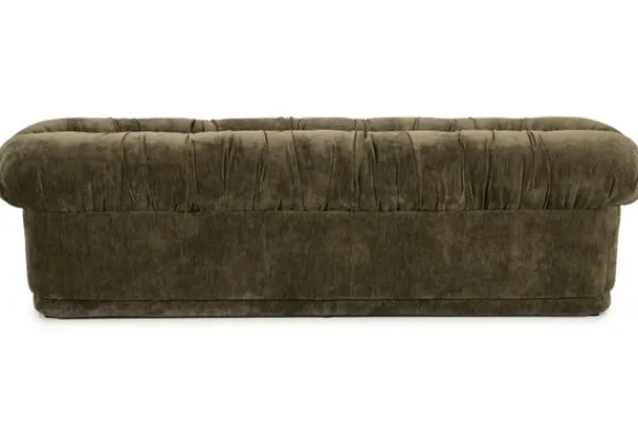 De royale zitting is afgewerkt met zachte plooien die zorgen voor een speels reliëf en een elegante dynamiek in het ontwerp. De polyester bekleding voelt aangenaam zacht aan en geeft de halbank een tijdloos en verfijnd karakter.