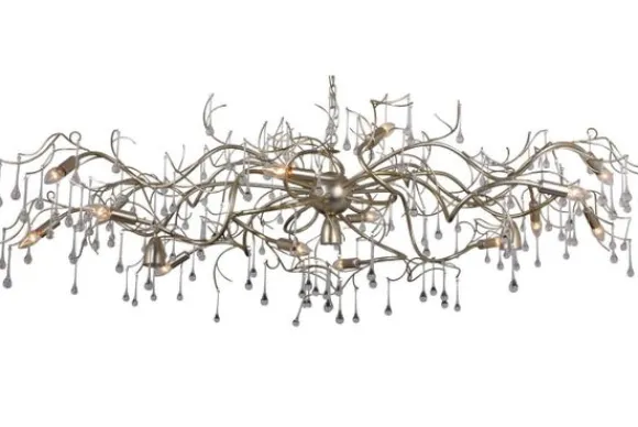Hanglamp Como van het merk Leclercq & Bouwman is verkrijgbaar in 2 kleuren. De afgebeelde lamp is in de kleur bladzilver. Deze ovale lamp heeft maar liefst 16 lichtbronnen en 3 onderspots. De lamp is prachtig gedecoreerd met glasdruppels.