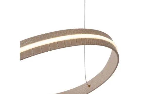 Hanglamp Slalom van het merk Lucide is een moderne designlamp met een vloeiende, golvende vorm die onmiddellijk de aandacht trekt. De aluminium afwerking geeft een luxe uitstraling en maakt de lamp een echte blikvanger boven de eettafel, in de woonkamer of in een ruimtelijke hal.