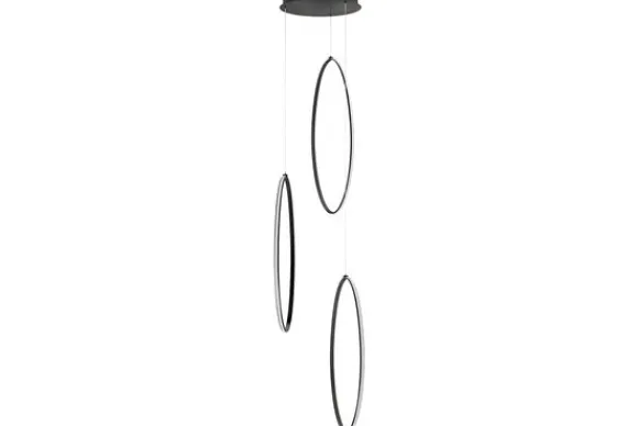 Hanglamp Olympia Zwart van het merk Highlight bestaat uit drie metalen ringen die een diameter van 40 cm hebben. De ringen zijn los van elkaar in hoogte te verstellen. De maximale lengte van deze lamp is 350 cm. De plafondbevestiging heeft dezelfde kleur als de ringen en heeft een diameter van 50 cm. In de ringen zijn LED-strips verwerkt die collectief 96W verbruiken. Deze lamp is ook in het zilver verkrijgbaar.