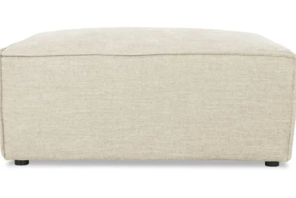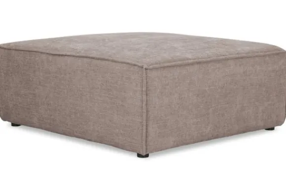 De hocker is verkrijgbaar in verschillende maten en biedt keuze uit verschillende materialen, waaronder leder en stoffen als velvet en bouclé.