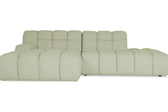 Je kunt kiezen uit verschillende materialen, waaronder stoffen als velvet en boucle. Daarnaast is de bank verkrijgbaar in uiteenlopende kleuren.