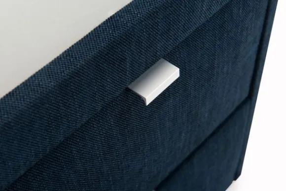 Dit nachtkastje wordt standaard uitgevoerd met aluminium greepjes, zwart is optioneel.
