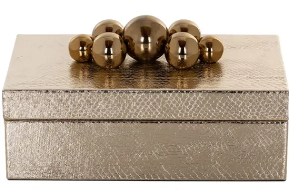 Opbergbox Norah 210969 van het merk Richmond Interiors heeft een luxueuze uitstraling. De opbergbox heeft een lichte slangenprint met messing bollen bovenop de deksel. De binnenkant van de opbergbox heeft een afmeting van H4,5 x B21,5 x D11 centimeter. Een chique opbergbox om jouw mooie spullen in op te bergen.