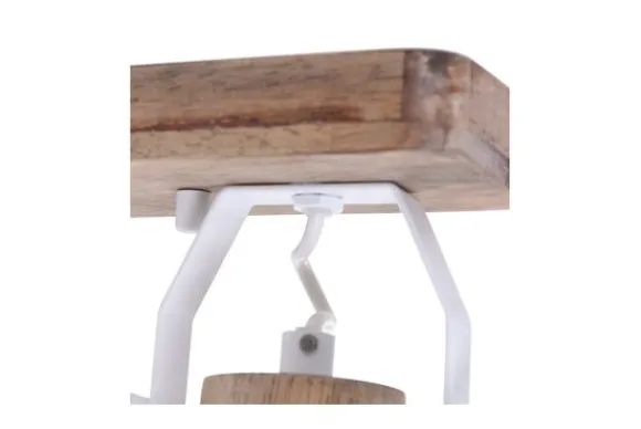 Plafondlamp 7969W Mexlite Gearwood van het merk Steinhauer is een witte plafondlamp vervaardigd uit metaal en hout. Door de houten accenten en grote verstelwielen heeft de plafondlamp een stoere en industriële uitstraling. De lamp is voorzien van een 2-lichts spots met een E27 fitting en is geschikt voor lichtbronnen tot 60 Watt. De kap is draai-/kantelbaar door middel van de grote verstelwielen en de diameter van de kap is 15 cm. Een leuke bijkomstigheid is dat de lamp dimbaar is middels een externe dimmer en dimbare lichtbron. De plafondlamp is handig om speciefieke delen in de ruimte te verlichten.