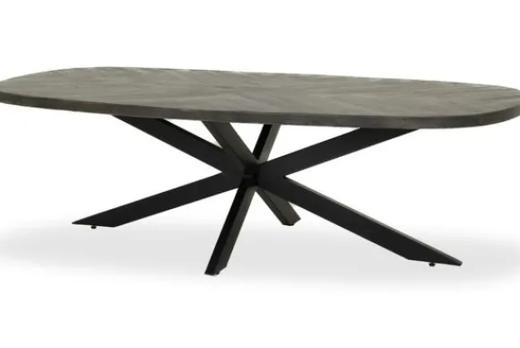 Salontafel Silvi AA 0141OB van het merk Tower Living is een natuurlijk interieurstuk met een tijdloze uitstraling. Het olijfkleurige tafelblad heeft een Deens ovale vorm met recht afgewerkte zijkanten en is in meerdere afmetingen te kiezen. Gecombineerd met de moderne, industriële zwarte spinpoot is het een mooi geheel.