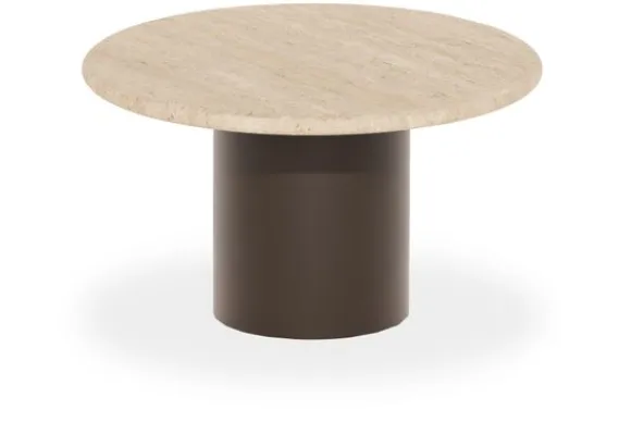 Salontafel Sivana van het merk BL Design is alleen beschikbaar in marmer met de kleur Travertine Beige, de kleur van de tafelpoot is bruin. De salontafel heeft een diamter van 70 cm en een hoogte van 40 cm. Marmer is een duurzame steensoort en heeft een luxe en stijlvolle uitstraling.
