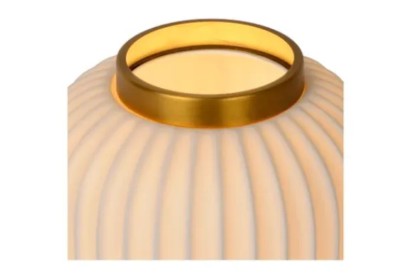 Tafellamp Gosse van het merk Lucide is een armatuur uit hoogwaardig porselein, afgewerkt met metalen randen. Dat is wat tafellamp Gosse zijn charmante uitstraling geeft. Het cilindrische ontwerp heeft een diameter van 19,5 centimeter en meet bijna 24 centimeter. Die compacte omvang maakt van Gosse een allround verlichtingsontwerp. Hij brengt een retro knipoog binnen in elke uithoek van je woning. De lichtbron, binnenin de porseleinen capsule, verspreidt zijn licht naar boven en doorheen het omhulsel. Die gedempte gloed is een instant sfeermaker. Compatibel met een ledlamp.