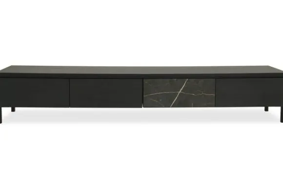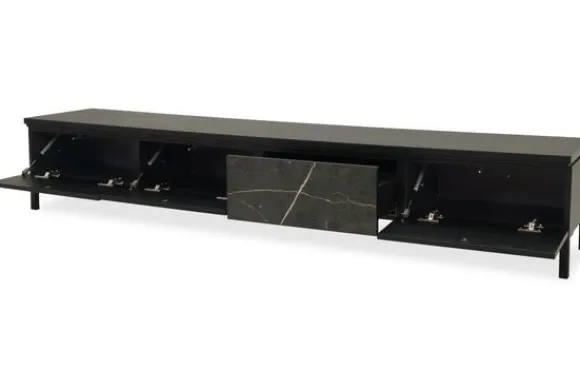 Monteer het tv-meubel hangend voor een strak effect of kies voor 12 cm hoge poten voor een luchtige look.