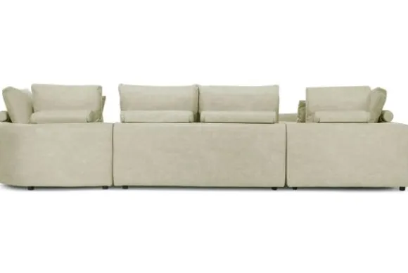 Omdat de bank is opgebouwd uit verschillende losse elementen is het mogelijk om gemakkelijk zelf een opstelling samen te stellen of te kiezen voor een vaste standaard opstelling. Daarnaast kan je jouw gekozen opstelling uitbreiden met een van de bijpassende hockers die zorgen voor extra zitplek of een comfortabele voetensteun. Ook is er keuze tussen brede of smalle rugkussens.