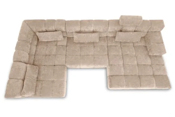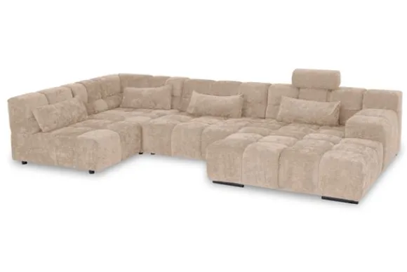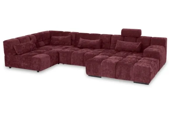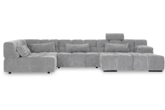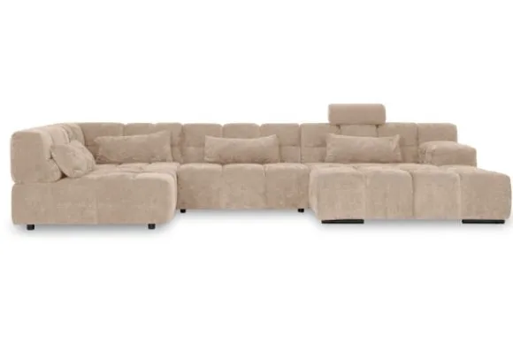 Dit bankstel is samen te stellen in vele afmetingen en verschillende opstellingen, of kies uit een van de standaard opstellingen. Ook kan je kiezen uit mat zwarte of chroom pootjes en zijn er bijpassende hoofdsteunen, sier- en lendekussens en poefjes beschikbaar. Deze worden uitgevoerd in dezelfde stof als de bank.