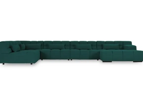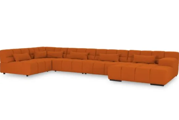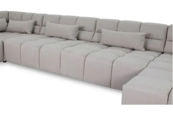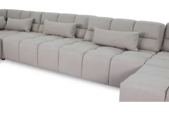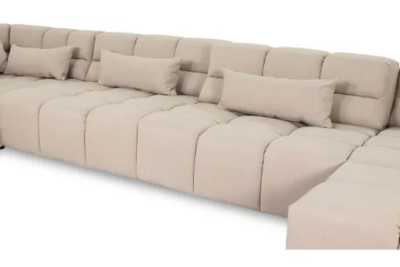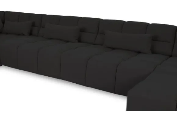 Dit bankstel is samen te stellen in vele afmetingen en verschillende opstellingen, of kies uit een van de standaard opstellingen. Ook kan je kiezen uit mat zwarte of chroom pootjes en zijn er bijpassende hoofdsteunen, sier- en lendekussens en poefjes beschikbaar. Deze worden uitgevoerd in dezelfde stof als de bank.