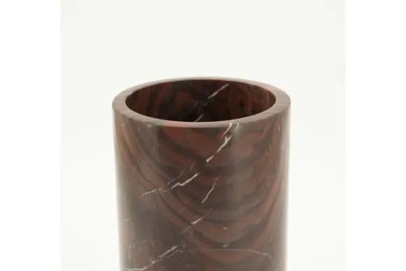 Vaas Rosso 250154 van het merk By-Boo is een stijlvolle en robuuste toevoeging aan je interieur. Vervaardigd uit massief marmer in een diepe, warme bruine tint met elegante witte aders, straalt deze vaas pure luxe en verfijning uit. De organische marmerpatronen maken elk stuk uniek en voegen een vleugje exclusiviteit toe aan je interieur. Marmer is een natuurproduct en kenmerkt zich door de unieke afwerkingen en kan zowel grove als gladde delen bevatten.