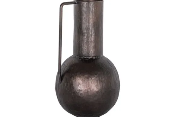 De vaas is uitgevoerd in metaal met een donkere koperkleurige afwerking die warmte en diepte toevoegt aan ieder interieur.