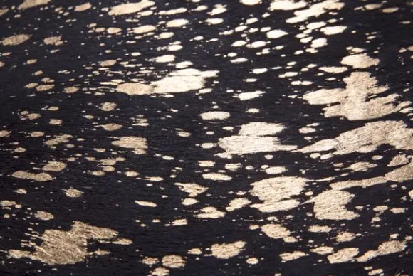 Vloerkleed Glam 110 Zwart Goud van het merk Divendo is verkrijgbaar in verschillende afmetingen en kleuren. Het ontwerp van dit leren vloerkleed kenmerkt zich door het echt geverfde leer, elegante gouden accenten en de natuurlijke contour. Aantrekkelijke uitsparingen die variëren in vorm en maat geven het tapijt een unieke uitstraling. Dankzij de bedrukte folie-elementen in het goud straalt de koeienhuid luxe en elegantie uit. Creëer een gezellige en elegante sfeer in huis door het koeienhuid vloerkleed te gebruiken als vloerbedekking, stoelhoes of wandkleed. Dit gezellige vloerkleed kan ook toegepast worden in ruimtes die voorzien zijn van vloerverwarming.