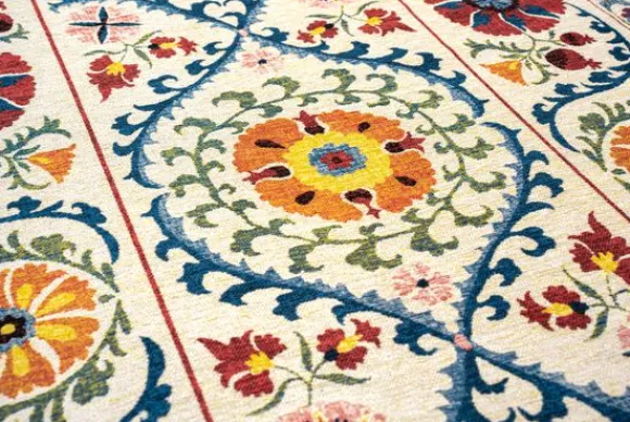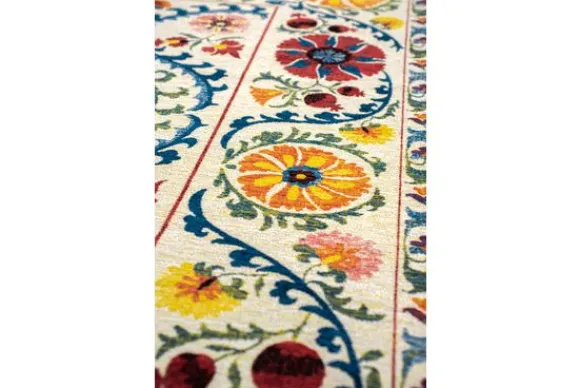 Vloerkleed Antiquarian Suzani Origine 9728 is onderdeel van de Antiquarian collectie van het merk Louis de Poortere. Dit kleed is een waar kleurenspektakel. Het complexe patroon is geïnspireerd door traditionele borduurwerken uit Centraal Azië. Eeuwenoude motieven en figuren zijn door de ontwerpers gebruikt om een nieuwe, eigentijdse interpretatie aan deze klassieke tradities te geven. Met de gevarieerde patronen en kleurcombinaties is dit mooie kleed een echte aandachttrekker in een ruimte.