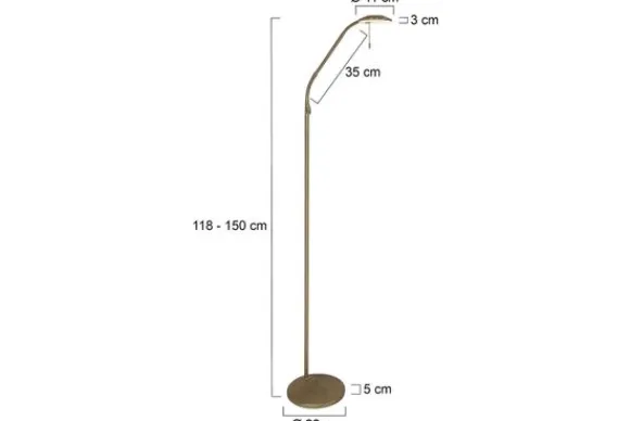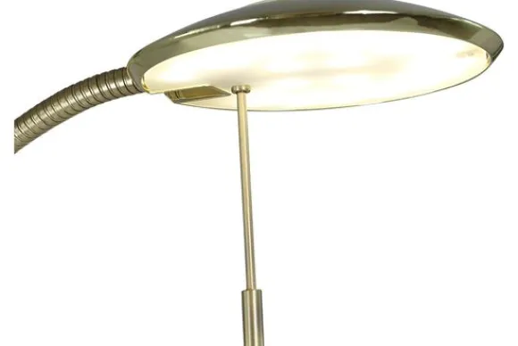 Vloerlamp Zenith 7910ME van het merk Steinhauer is een messingkleurige vloerlamp met een tijdloze schoonheid. De vloerlamp voegt met zijn variabele hoogte van 118 tot 150 cm en voetdiameter van 22 cm een vleugje klasse toe aan elke ruimte. De lamp is voorzien van een vervangbare LED module van 6 Watt en 700 Lumen. De lamp is dimbaar en lichtkleur instelbaar van 2200 Kelvin (warm geel licht) tot 4000 Kelvin (fel wit licht), te bedienen middels een pushdimmer die op de buis van de lamp zit.