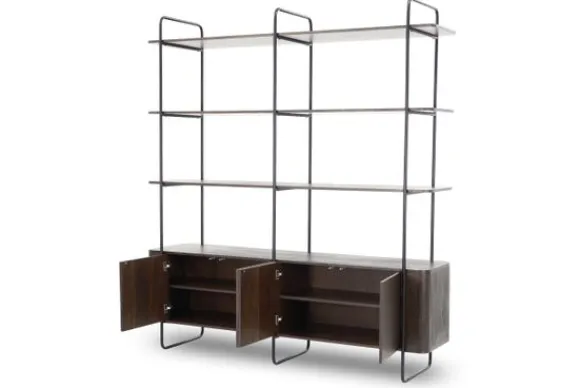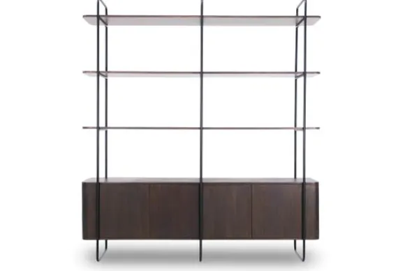 Wandkast James bruin 95863 van het merk Eleonora is gemaakt van mangohout en metaal. De kast heeft onderin vier deuren en hierboven vier planken. Je hebt zo de mogelijkheid om zowel spullen op te bergen als tentoon te stellen.