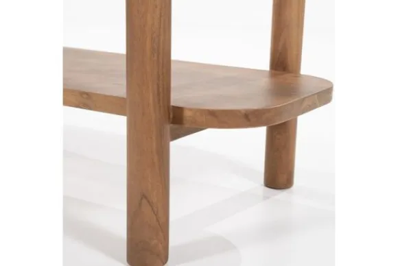 De wandkast is gemaakt van acaciahout. Dit is een harde houtsoort die goed bestand is tegen dagelijks gebruik. De fijne nerfstructuur blijft zichtbaar en geeft het meubel een natuurlijke uitstraling.