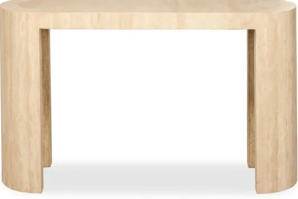 Wandtafel Biltmore 212242 van het merk Richmond Interiors is een elegant en verfijnd statementstuk voor de hal, woonkamer of achter je bank. Het afgeronde design en de strakke lijnen geven deze tafel een moderne, architectonische uitstraling. Gemaakt van Italiaans travertin, straalt de wandtafel een serene luxe uit die moeiteloos past in een japandi, minimalistisch of modern.