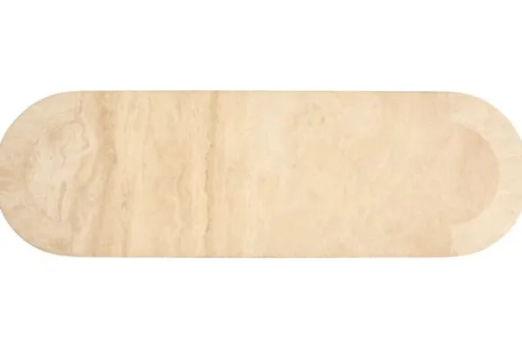 Travertin is een kalksteen in een zachte beige tint, ontstaan in warmwaterbronnen met een hoog kalkgehalte. De karakteristieke kleine gaatjes ontstaan door het schuren van takjes, stenen en blaadjes in het stromende water. Het resultaat is een robuuste, duurzame steensoort die makkelijk schoon te maken is met een vochtige doek. Elk stuk is uniek, je haalt dus écht iets bijzonders in huis.