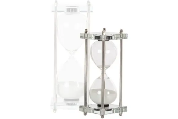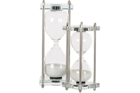 Zandloper Gigi 212141 van het merk Richmond Interiors is een stijlvol decorstuk dat speelsheid en klasse combineert. De combinatie van helder glas, glanzende metalen details en een stevig frame van glasplaatjes zorgt voor een moderne en luchtige uitstraling.