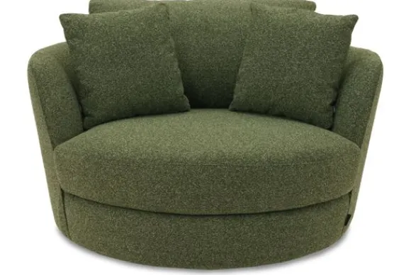Draaifauteuil Estelle van het merk Domicil is een comfortabele fauteuil met een moderne uitstraling. De ronde vorm en zachte belijning zorgen voor een fijne zit en een uitnodigend geheel. Deze draaifauteuil past moeiteloos in een modern interieur en sluit ook mooi aan bij een landelijk of klassiek woonbeeld. De stoel komt inclusief het vastzittende rugkussen en twee losse sierkussens.