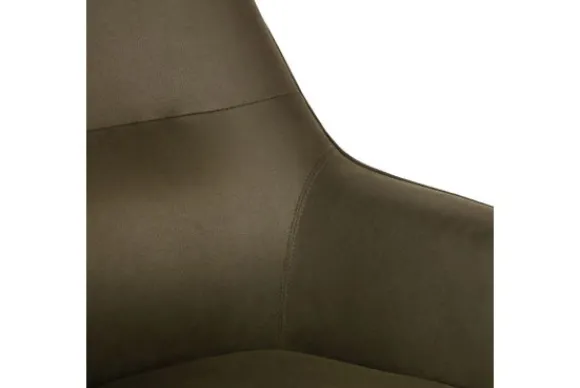 Fauteuil Tod is een ergonomische draaifauteuil uitgevoerd in army kleurig microvezel. De mooie strakke lijnen in combinatie met de subtiele rondingen zorgen ervoor dat Tod een lust voor het oog is en daarnaast is voorzien van maximaal comfort. De dikke zitting en perfecte vorm armleuningen zorgen voor een extra fijne zit. Het subtiele horizontale stiksel op de voorkant van de rugleuning en de piping rondom de zitting en leuning zorgen voor de finishing touch en geven het geheel een luxe uitstraling. De robuuste metalen kruispoot uitgevoerd in zwart zorgt voor stevigheid en geeft een moderne twist.