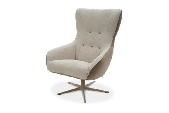Draaifauteuil Borg van Living & Chill is een speelse eyecatcher met een luxe uitstraling. De zachte vormen en het comfortabele zitvlak maken deze fauteuil tot een opvallende toevoeging aan elk interieur.